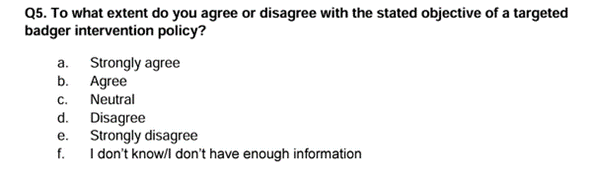 - We note that if a respondent doesn’t care much about Badgers and wants more culling, the Defra consultation is relatively easy to complete. This will create a massive bias in the responses gathered.