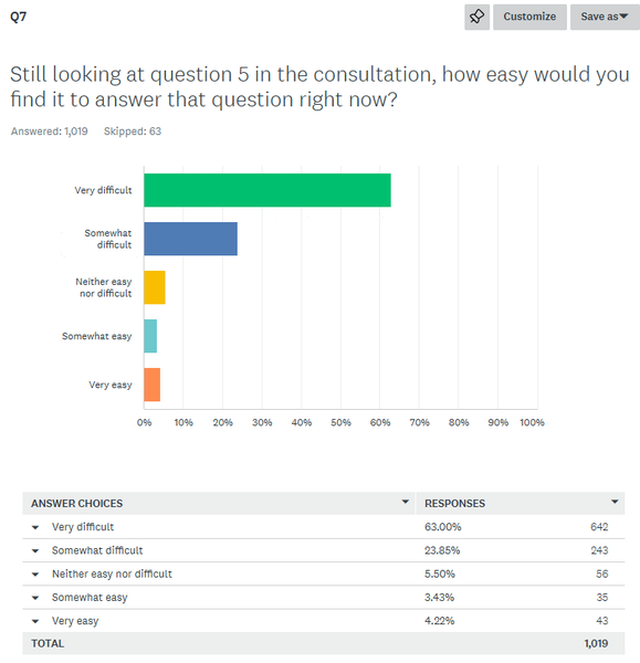 Question 7 – we asked our respondents whether, having looked at Defra’s question 5, and looked for the stated objective, how easy would they find it to answer Defra’s question 5, right now.