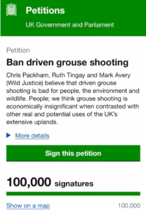 Our Ban Driven Grouse Shooting petition has passed the milestone of 100,000 signatures and is now standing at over 101,000