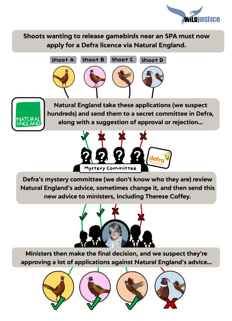 Defra had ‘No cogent reasons’ to disregard Natural England’s expert advice. So to find out that Therese Coffey and Richard Benyon have licensed releases of pheasants and partridges into what are supposed to be some of our most precious places, against that advice – and during a catastrophic outbreak of bird flu – it frankly reeks of both recklessness and arrogance. It seems to us they may have had more regard for the interests of the shooting industry than those of the environment in this matter.