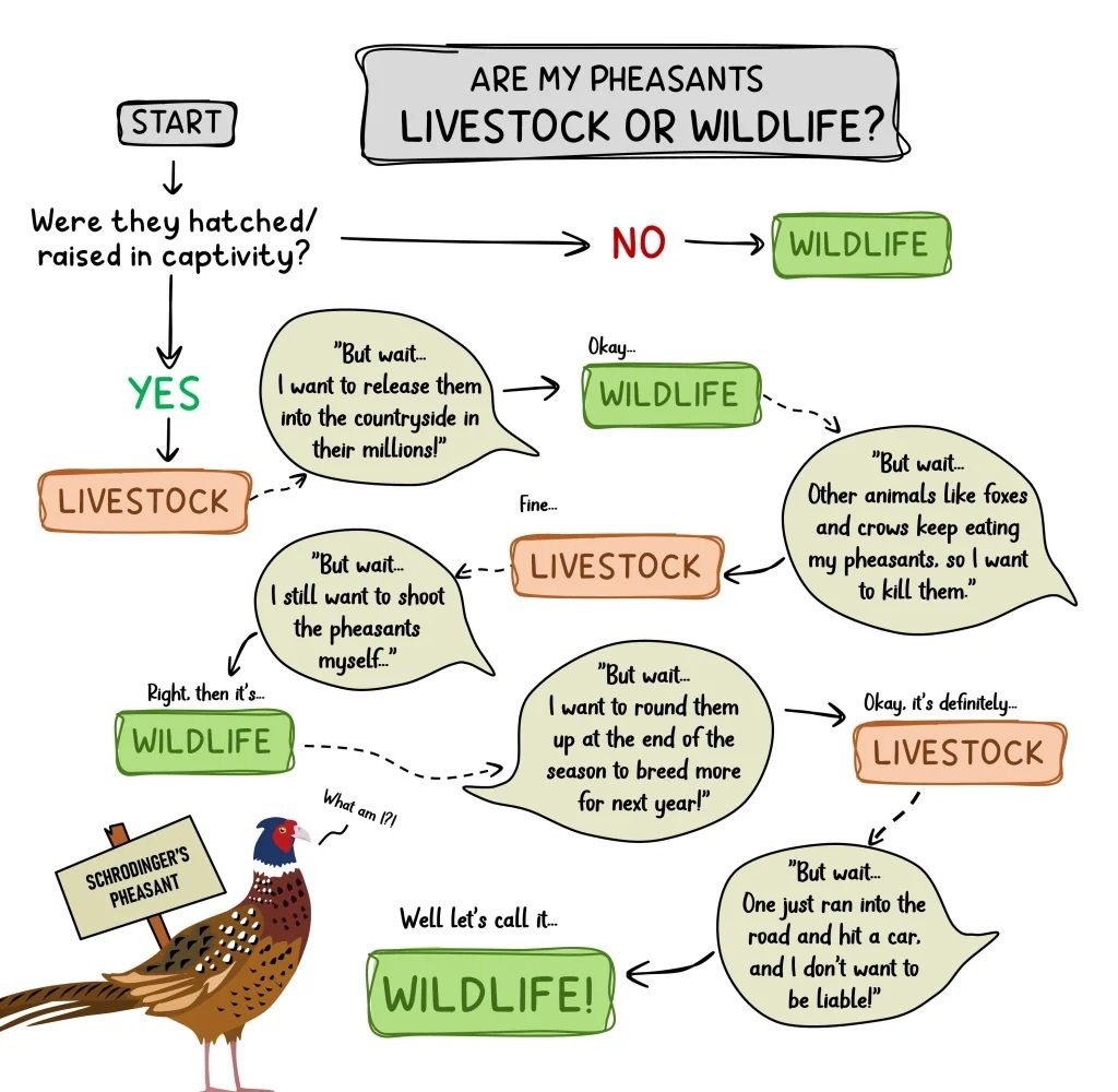 Although many millions of gamebirds are imported into the UK from continental Europe each year (as eggs or chicks or sometimes as poults), some of the breeding stock comprises released gamebirds that have survived the shooting season and are caught up and taken back into captivity. This is part of the Schrodinger’s Pheasant (or Red-legged Partridge) paradox to which we have drawn attention in the past. Gamebirds can flip between being livestock and wild birds several times in their lives – mainly to suit the preferences of the shooting industry.