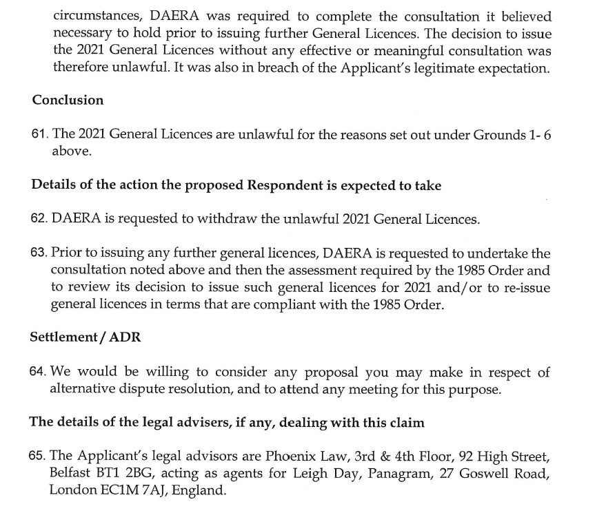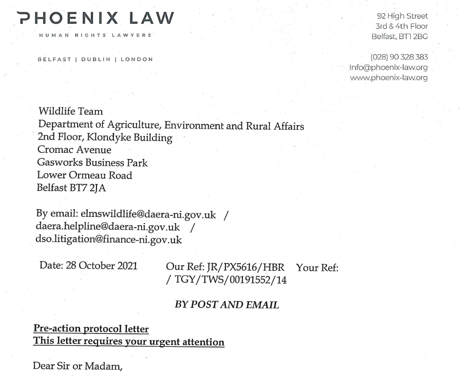 Our pre-action protocol letter to DAERA: