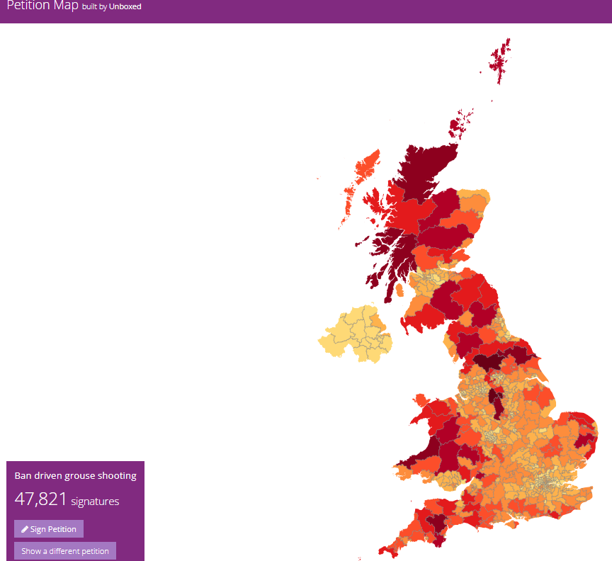 Thanks to you, the ban driven grouse shooting petition is currently the highest-ranking environmental petition and is up there with issues such as taxation, immigration,