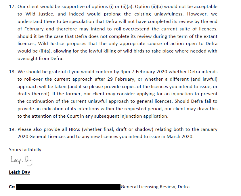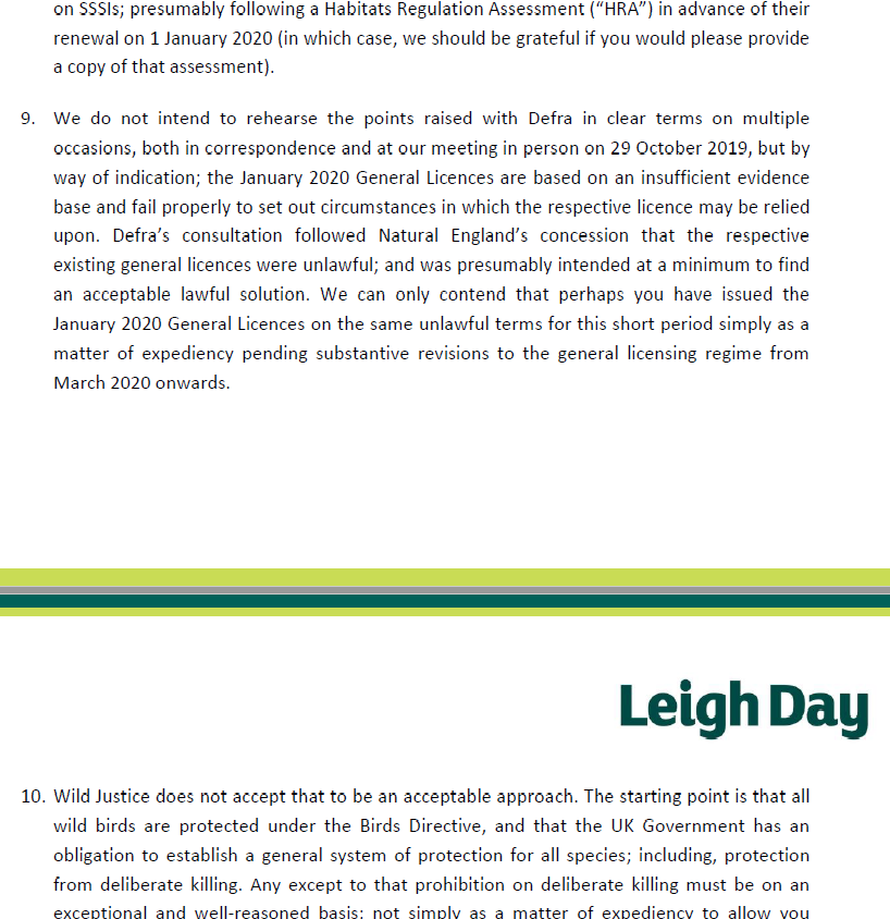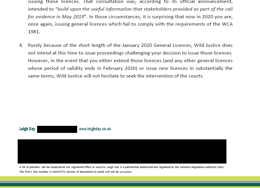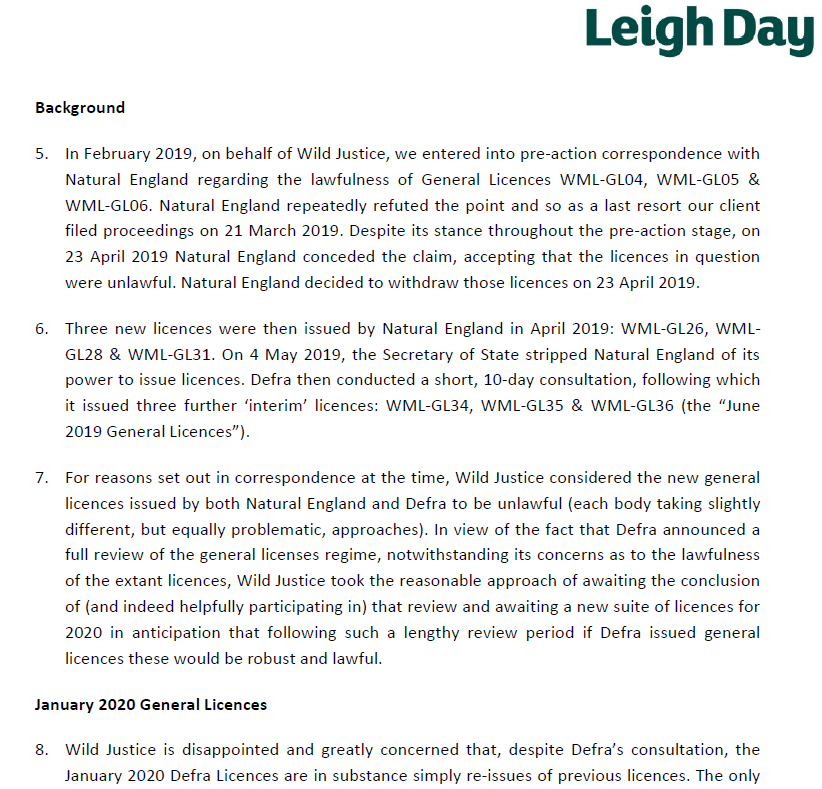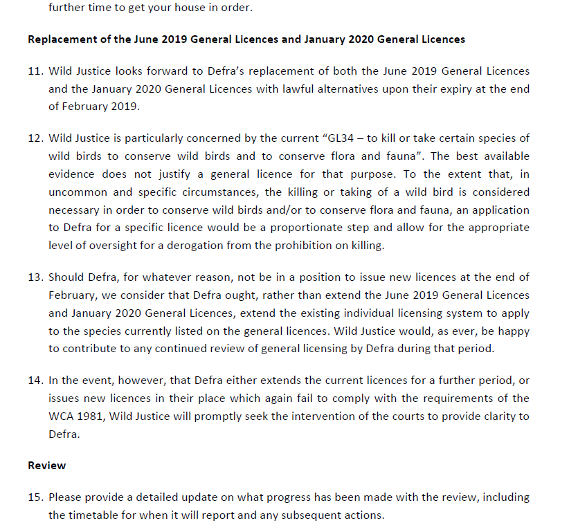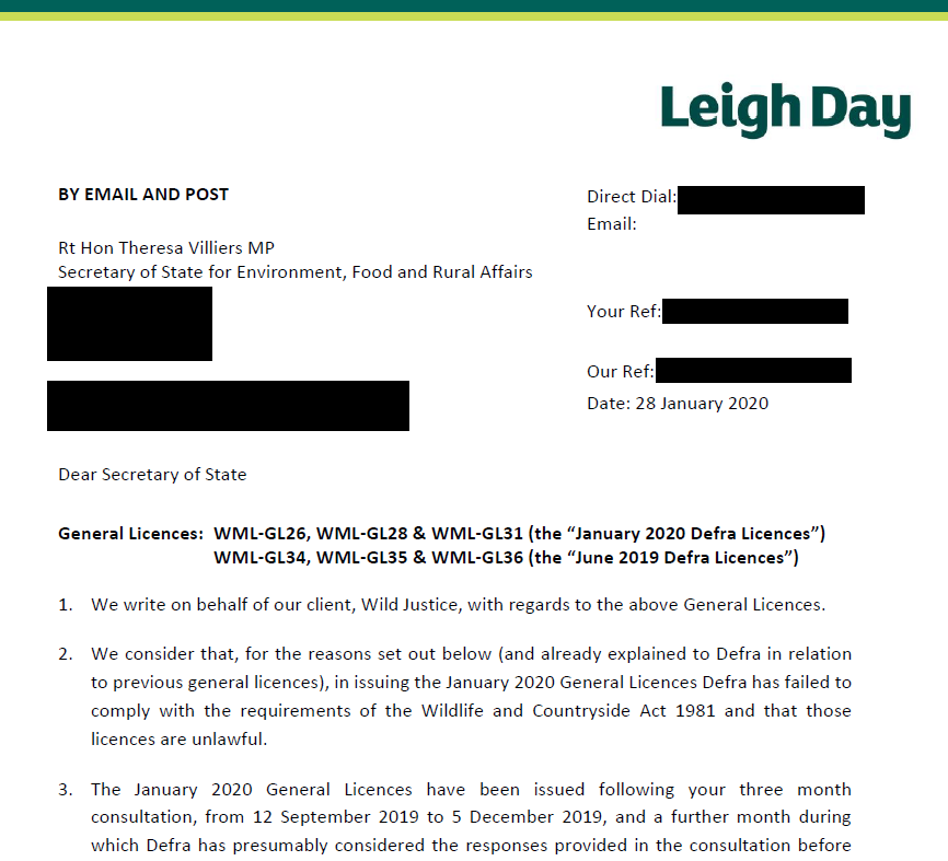 Yesterday Wild Justice’s lawyers sent this letter to DEFRA. Paragraphs 16, 17 and 18 sum it all up pretty well. The choice is DEFRA’s – and with the choice comes the responsibility for the consequences.
