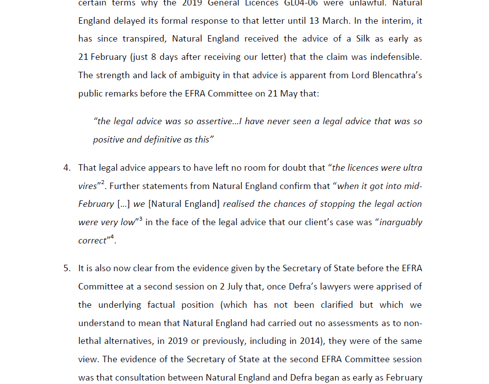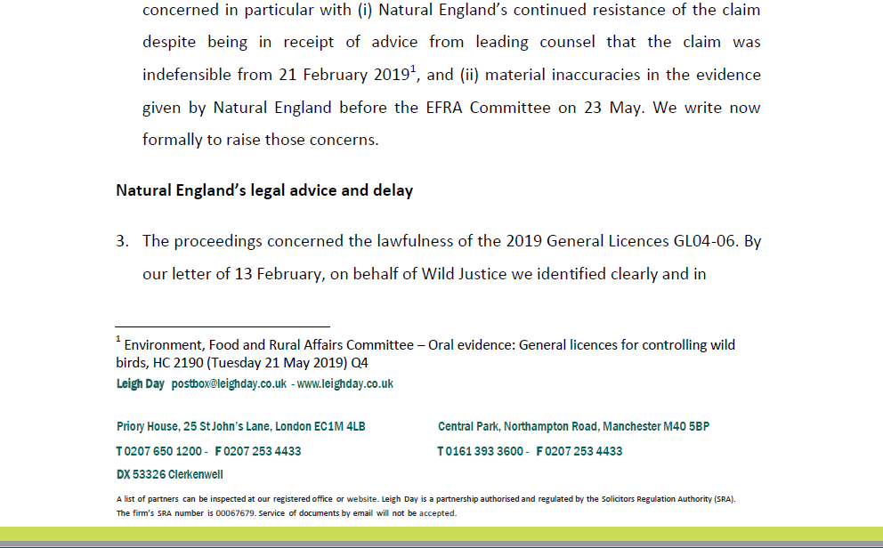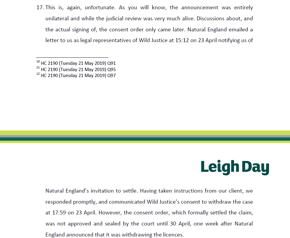 This letter was sent to Natural England yesterday and copied to the EFRA Committee.