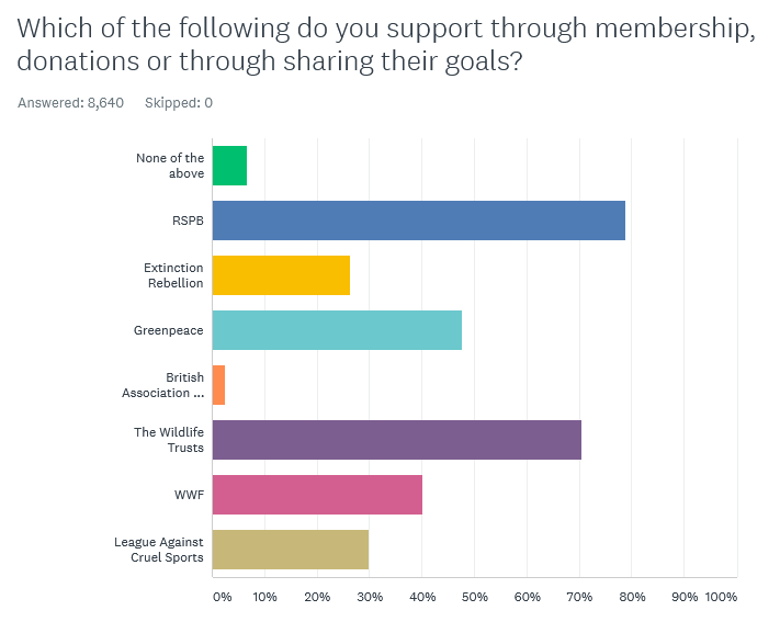 Wild Justice newsletter subscribers generally support a range of other organisations