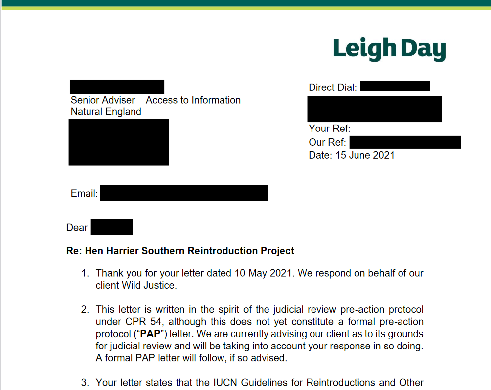 Yesterday Wild Justice sent the following letter to Natural England questioning the quality of their assessment of the feasibility of a reintroduction of Hen Harriers to southern England.