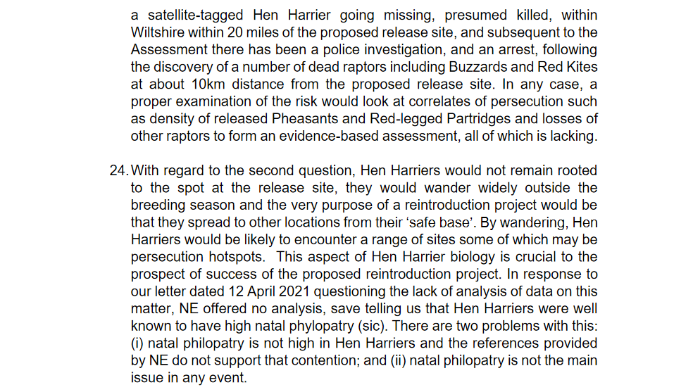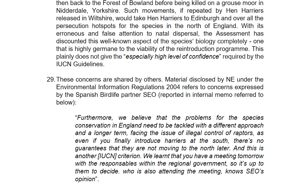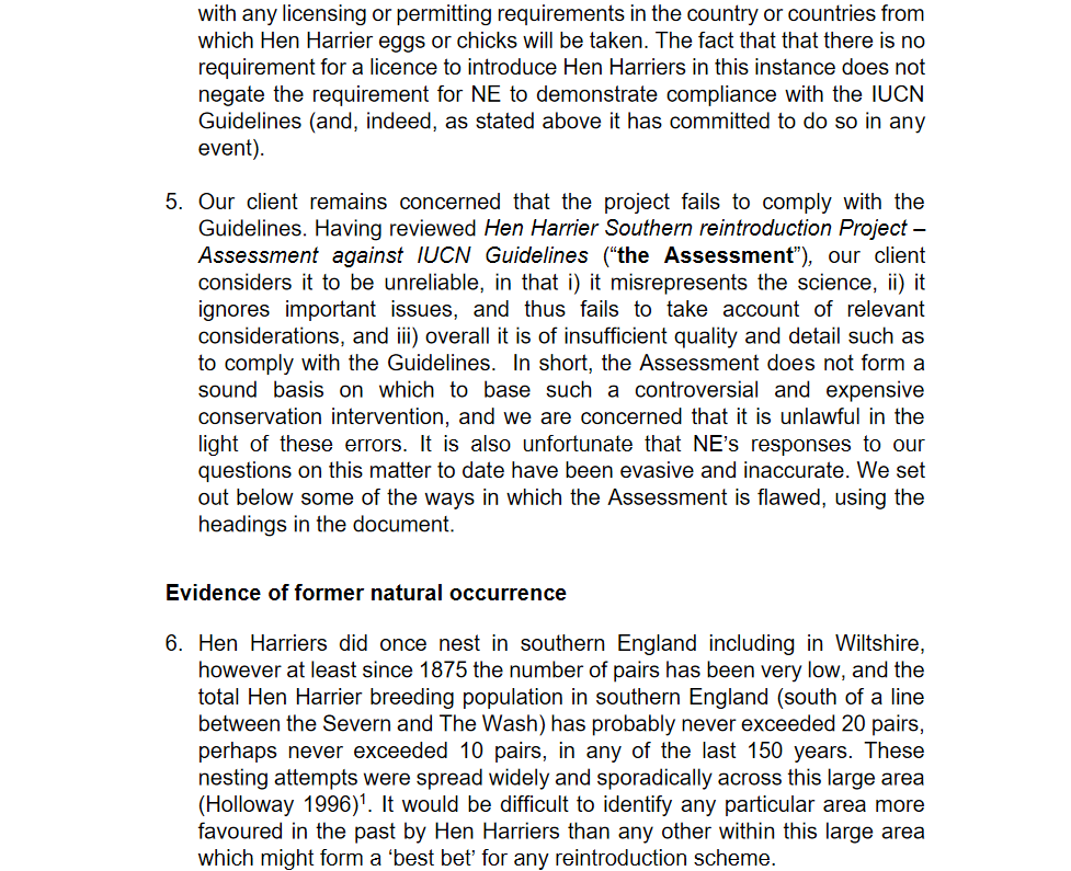 Wild Justice questions the quality of NE’s IUCN Assessment for their lowland Hen Harrier reintroduction project
