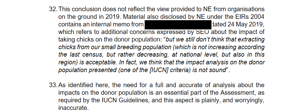Wild Justice does not think that the Assessment carried out by Natural England is of high enough quality to form a safe basis for a reintroduction project. We are happy to concede that a proper assessment, carried out well and referring to all relevant data might (or might not) show that the proposed project might (but also might not) meet the criteria set out in the IUCN Guidelines.