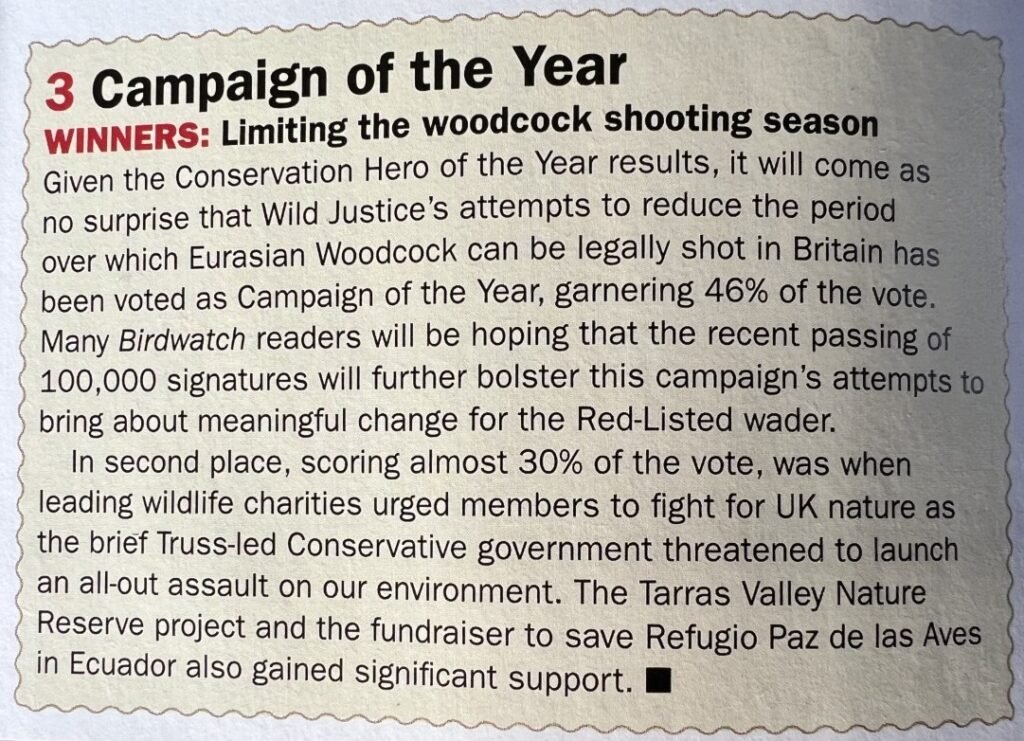Up against strong contenders, we won the Conservation Hero of the Year Award and our campaign to limit the Woodcock shooting season won the Campaign of the Year Award.